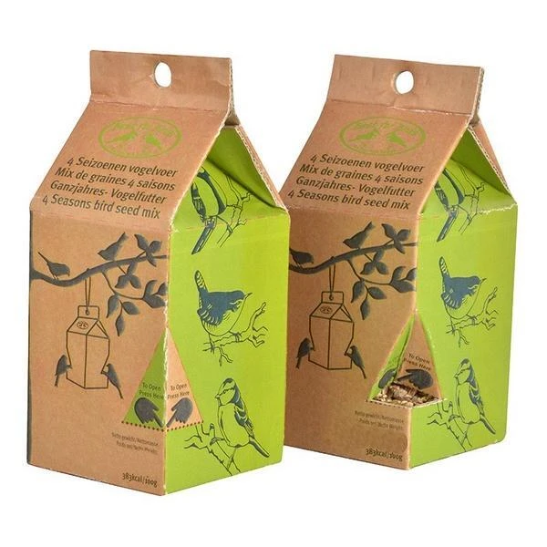 Een leuke manier om de vogels in jouw tuin te voederen. Het 4 seizoenen vogelvoer zit verpakt in een handige brick verpakking dat voorzien is van een ophangtouw.