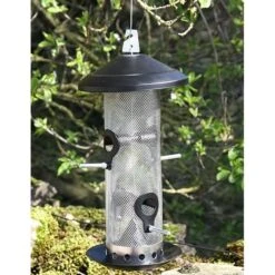 Vul deze voedertafel rijkelijk met verschillend vogelvoeder en geniet van de talrijke tuinvogels die komen smullen van al het lekkers. Onderaan de voedertafel is er een haakje voorzien om mezenbollen, gevulde kokosnoten of pindaslingers aan op te hangen.