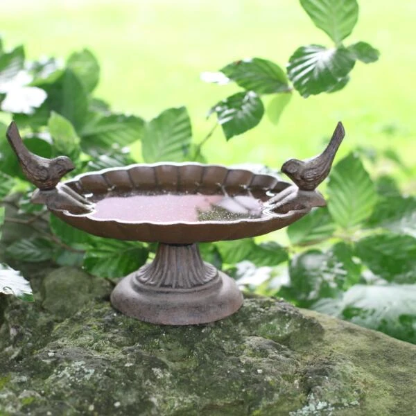 ESSCHERT DESIGN Vogelbad In Gietijzer Met Twee Vogeltjes Op Schelp
