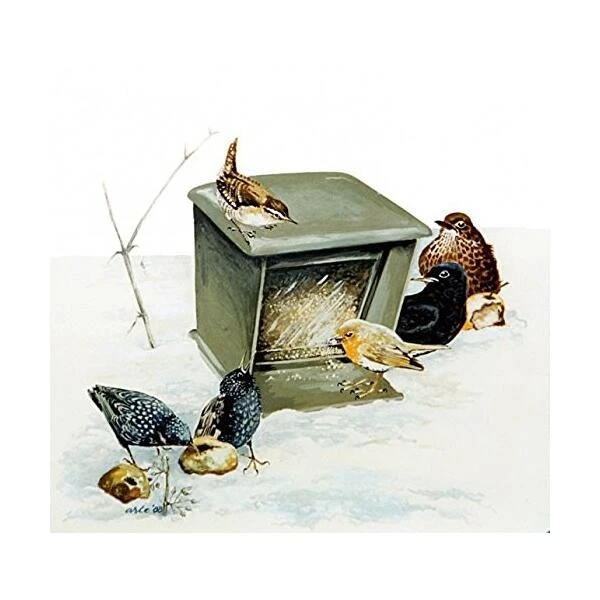 Unieke grondvoedersilo met een inhoud van 9 liter. Deze grondvoedersilo in duurzaam houtbeton wordt hoofdzakelijk bezocht door vogels die op de grond fourageren zoals merels, lijsters, de roodborst en de winterkoning.