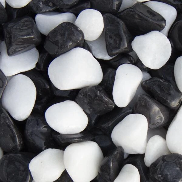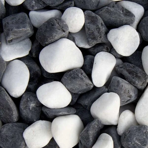 Panda grind is een prachtige siergrind, met zowel witte als donkergrijze steentjes waardoor een mooi contrast ontstaat. De uitstraling is dan ook modern, al is het grind door de ronde vorm toch niet té scherp aanwezig.