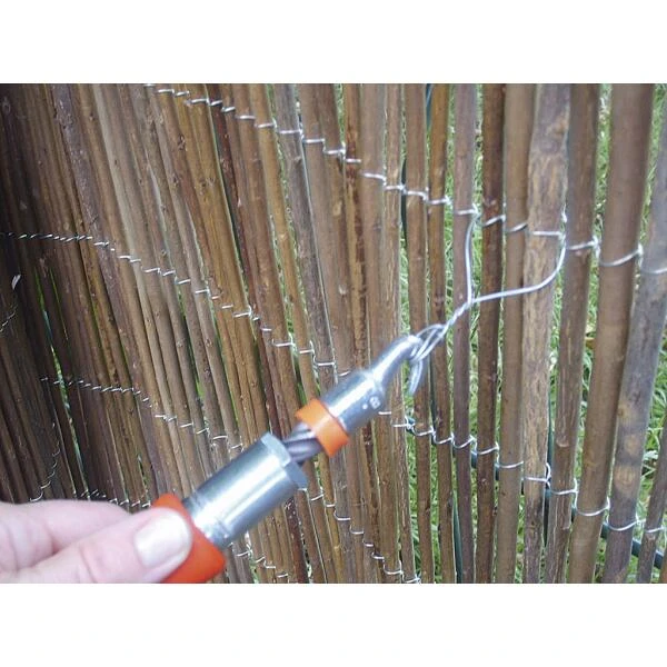 Automatische twister voor het vastzetten van afrasteringen (rietmatten, bamboematten,…) en tuinschermen.