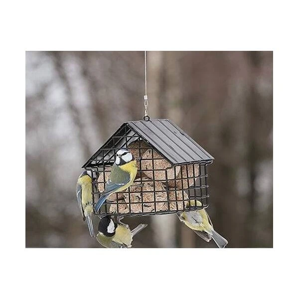 Een mooie vetbolhouder in de vorm van een klein huisje om heel wat soorten vogels naar jouw tuin te lokken. Naast het aanbieden van vetbollen heeft het voederhuisje door zijn design ook een decoratieve meerwaarde voor jouw tuin.