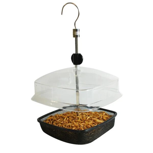 Dankzij het in de hoogte verstelbaar afdak kun je zelf regelen welk formaat van vogels er van het voer mag komen eten om zo te voorkomen dat de grotere tuinvogels met alle voer gaan vliegen.