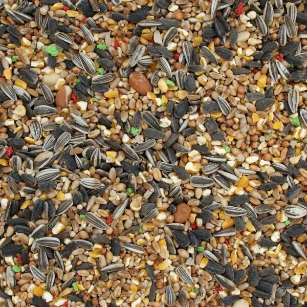 Een evenwichtig en volledig kwalitatief zadenmengsel voor allerlei soorten buitenvogels zoals mezen, roodborstjes, vinken, mussen, merels en duiven.