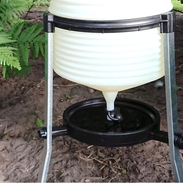 Het reservoir met drinkschaal is zeer stabiel en robuust en steunt op drie gegalvaniseerde metalen profielpoten. Het geheel is heel eenvoudig zelf te monteren.